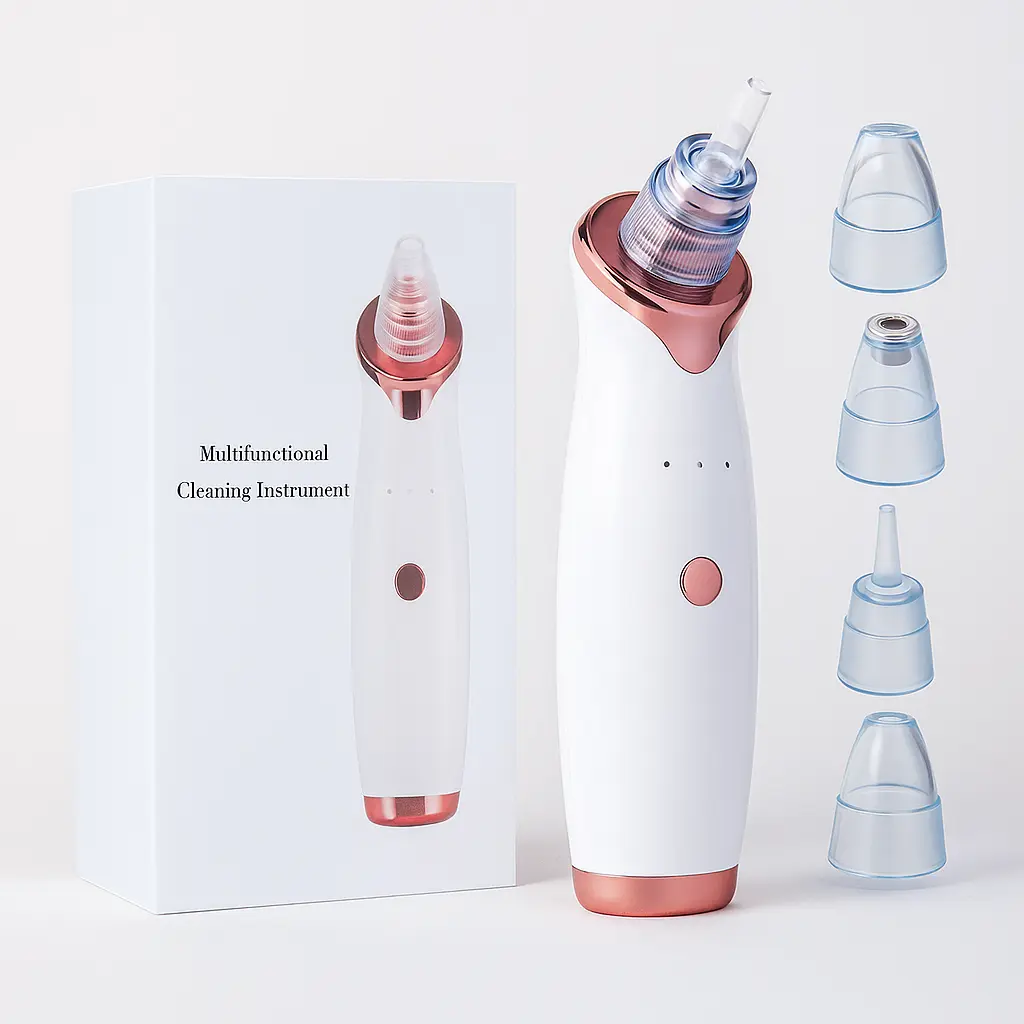El Removedor de puntos negros y espinillas es un dispositivo facial recargable, compacto y fácil de usar, diseñado para remover puntos negros, exceso de grasa y residuos acumulados en los poros. Con varios niveles de succión ajustables y diferentes cabezales intercambiables, se adapta a todo tipo de piel, incluso las más sensibles.